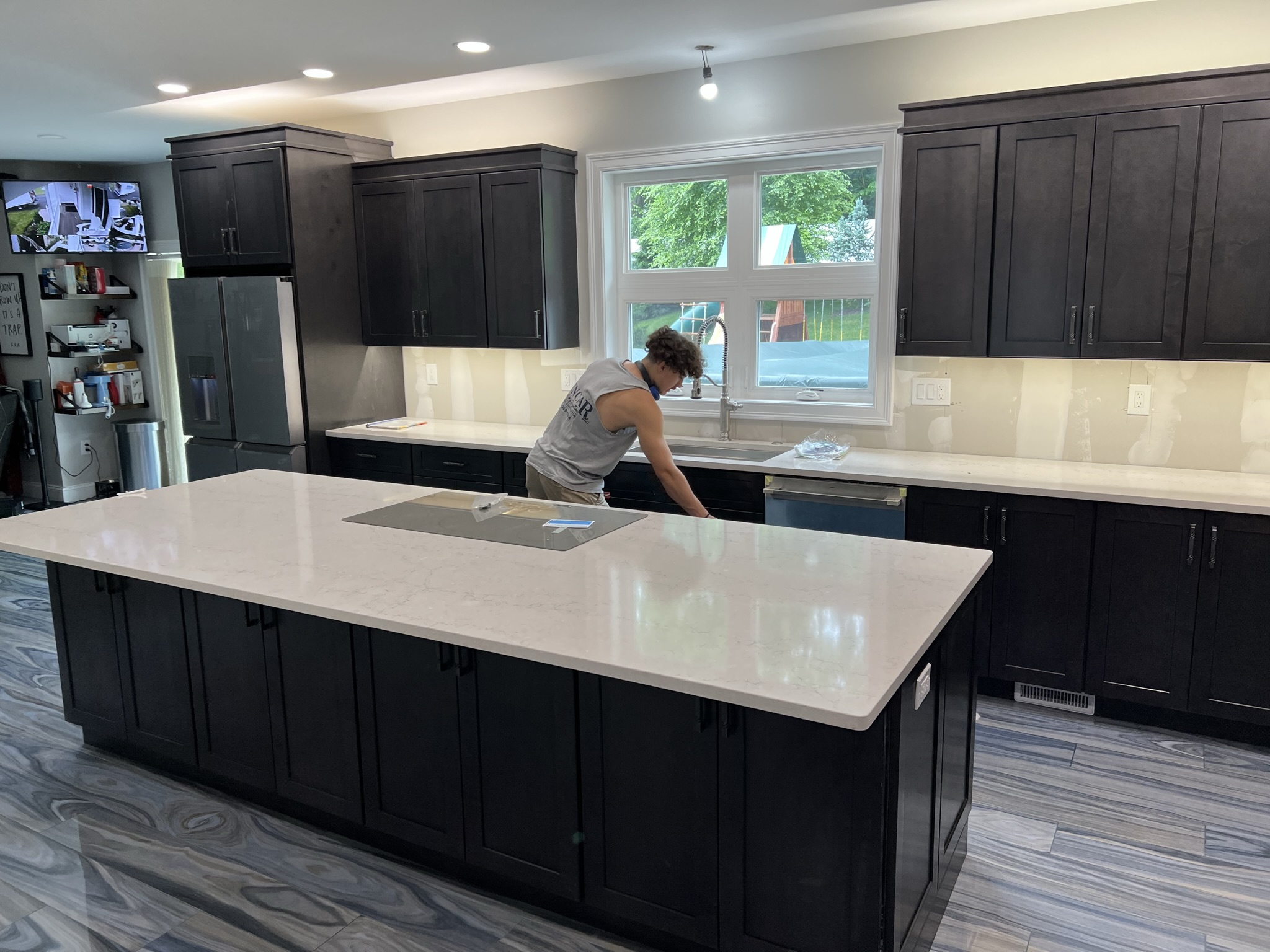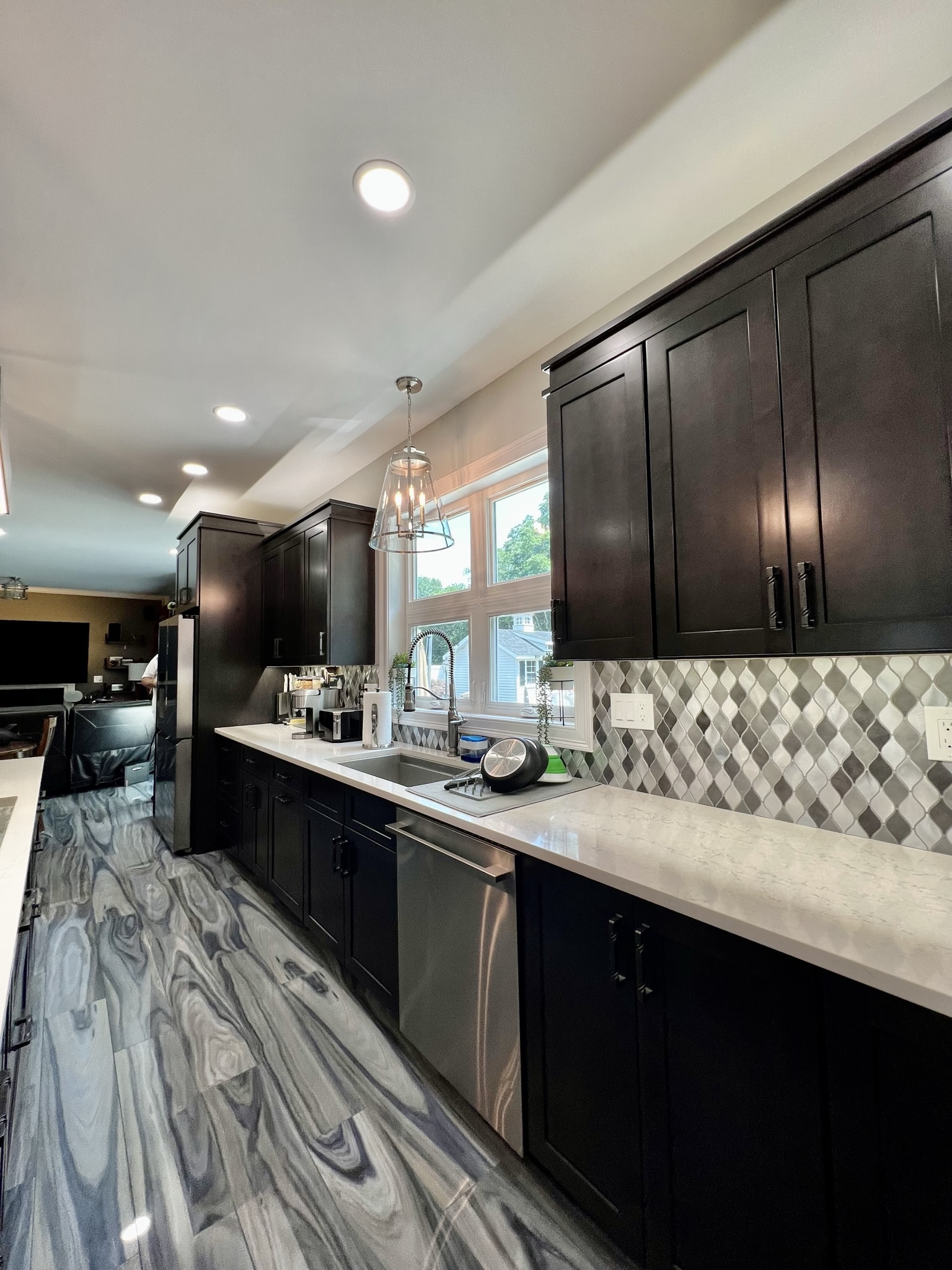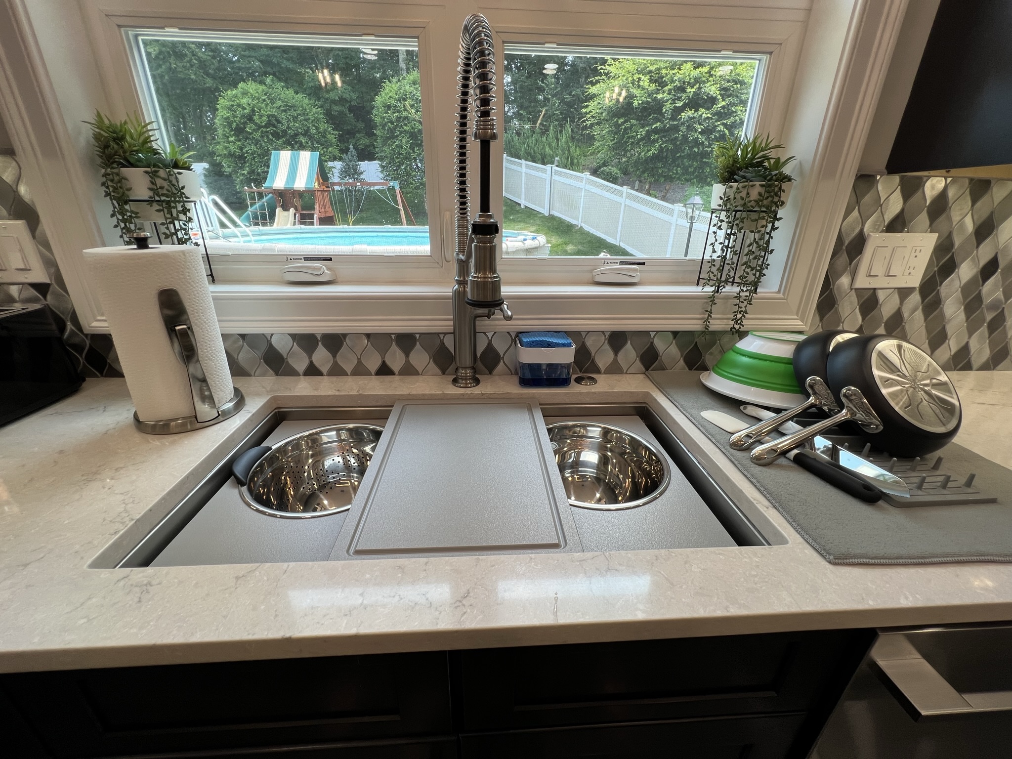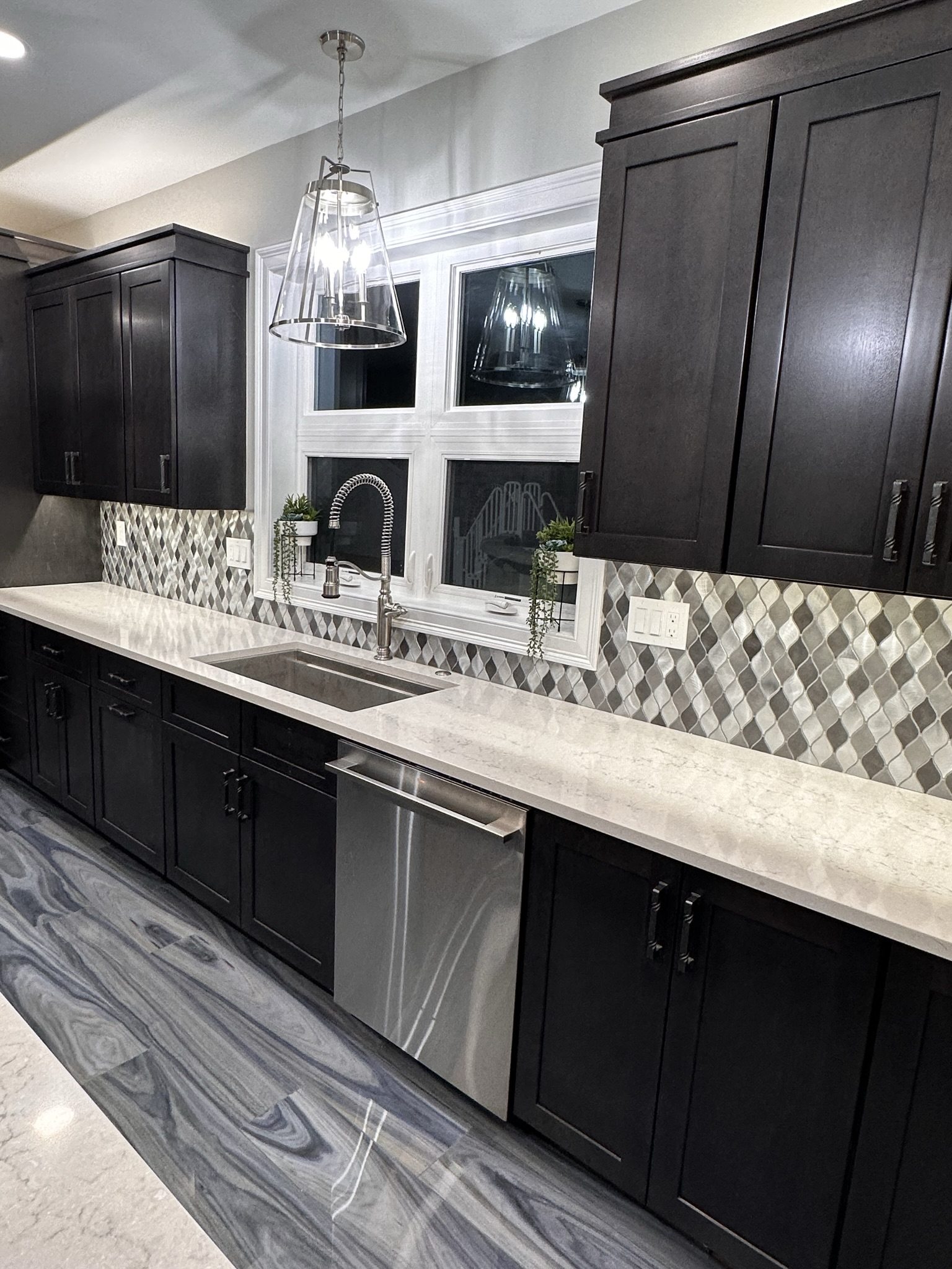 The project progressed smoothly from the demolition, the window installation, cabinet installation, and finish work. Our tile installer finished off the project with the tile backsplash!